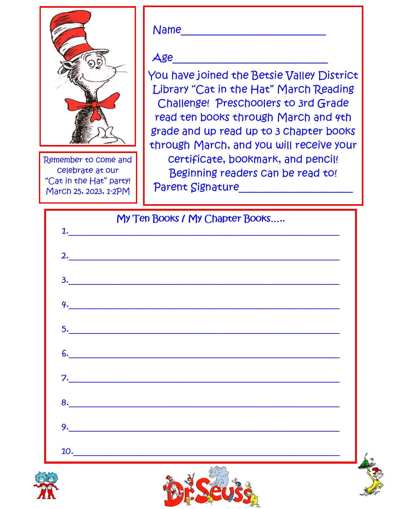 catinthehatreadinglog2023.jpgCat in the Hat Reading Log with a picture of Cat in the Hat, Sam I Am, Dr. Seuss Characters, Thing One and Thing Twohttps://bvdlibrary.ploud.net/site-assets/images/catinthehatreadinglog2023.jpg/viewhttps://bvdlibrary.ploud.net/site-assets/images/catinthehatreadinglog2023.jpg/@@images/image-1200-cf24a47032b951045c8ba0fa01fc9556.jpeg